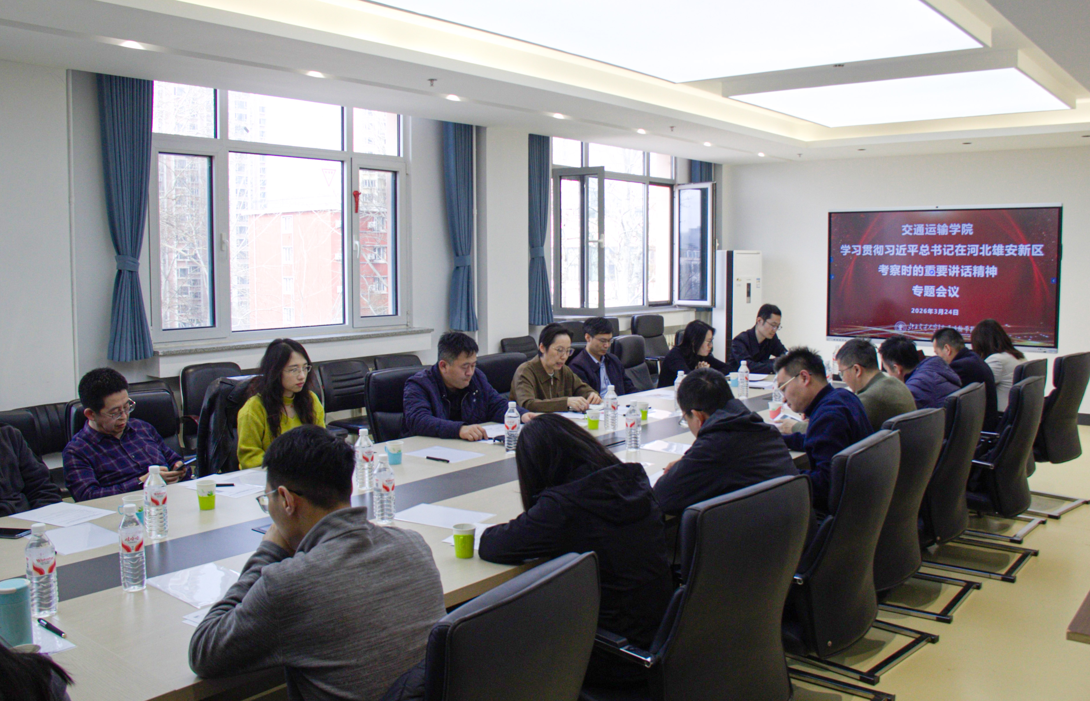 大家一致认为,建设雄安新区,是习近平总书记亲自决策、亲自部署、亲自推动的一项历史性工程。9年来,雄安新区高起点规划、高标准建设、高质量发展,“世界眼光、国际标准、中国特色、高点定位”的建设理念正在逐步转化为现实图景。作为交大运输人,我们要抢抓机遇、乘势而上,找准定位、发挥优势,不仅要做雄安建设的见证者,更要做雄安发展的参与者、贡献者。学院全体师生将牢记总书记嘱托,以“交通强国”的使命担当,以“知行合一”的交大精神,在学校党委的坚强领导下,发挥好百年的光荣传统,全力服务雄安校区建设,全力推进学院高质量发展,为建设交通强国、服务京津冀协同发展、支撑学校“双一流”建设贡献更大力量!